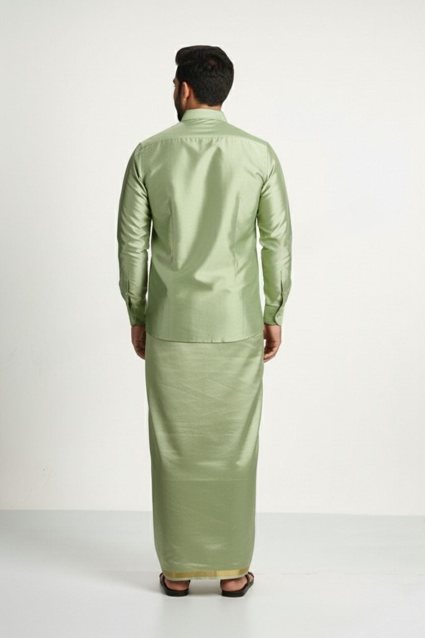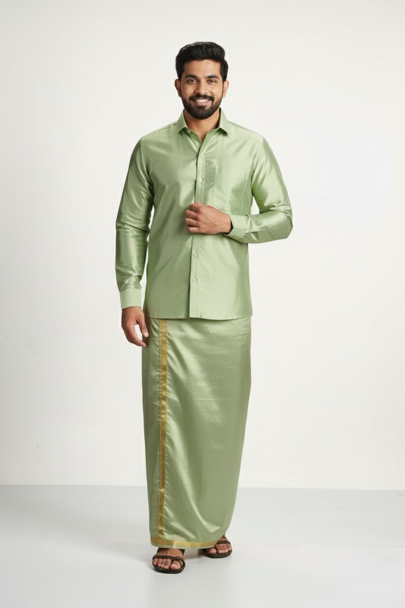 Art Silk Pista Green Shirt and Dhoti