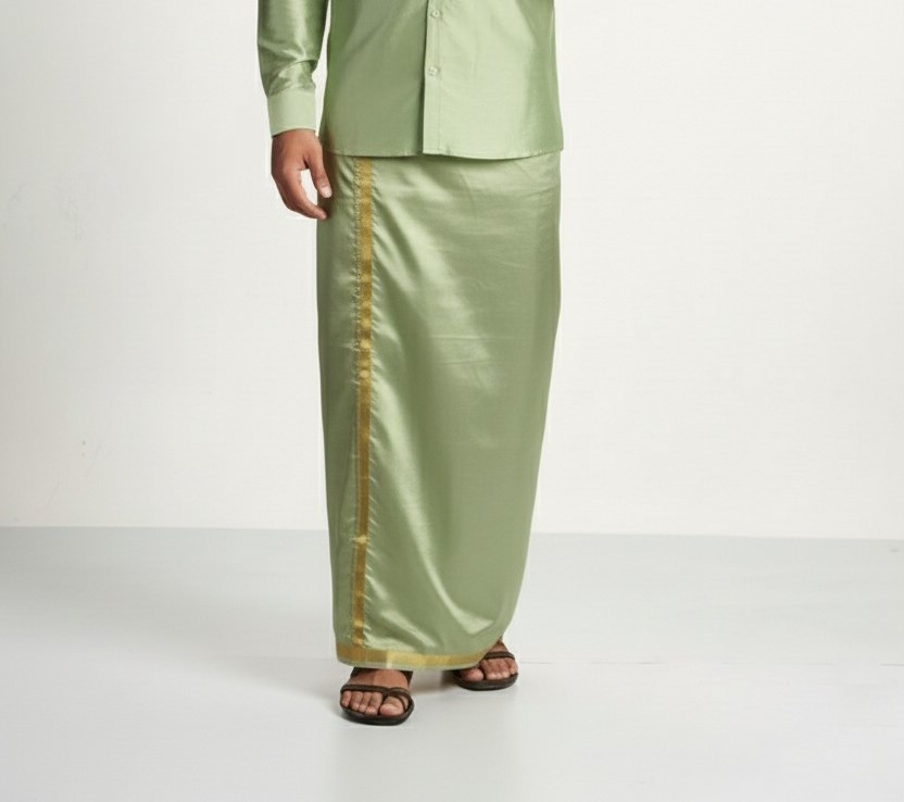 + Free ShippingArt Silk Pista Green Shirt and Dhoti