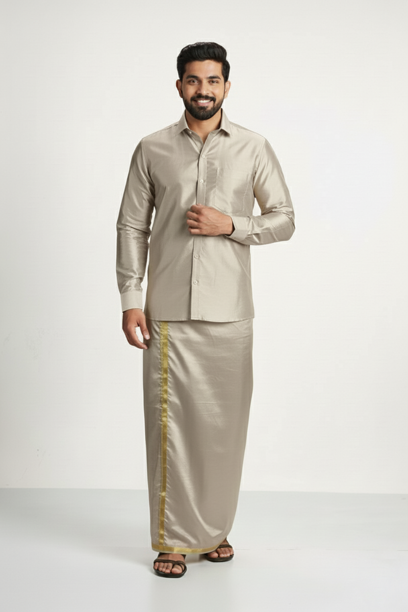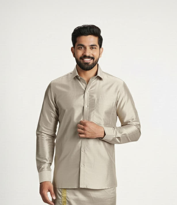 Art Silk Sand Stone Shirt and Dhoti