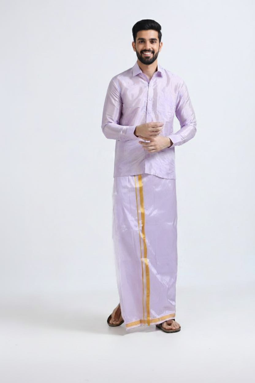 + Free ShippingArt Silk Ultra Violet Shirt and Dhoti