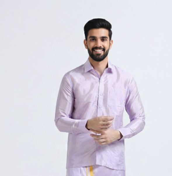 Art Silk Ultra Violet Shirt and Dhoti